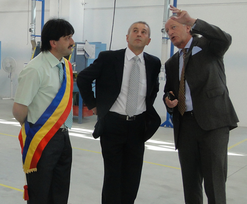 Delegaţia a fost aşteptată de conducerea locală şi primarul Petru Antal, cu toţii făcând turul vechii fabrici şi al halei nou-construite.