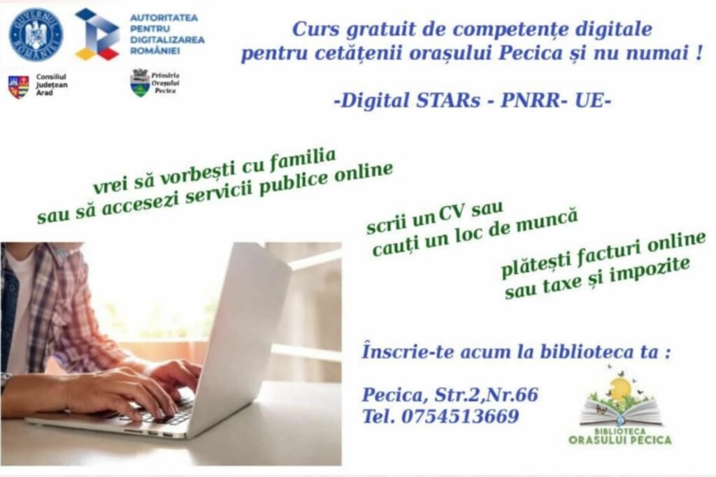 Orașul Pecica este una dintre cele 12 localități ale județului care, alături de Consiliul Județean Arad, implementează proiectul „Dezvoltarea competențelor digitale în cadrul bibliotecilor din județul Arad”, în cadrul Planului Național de Redresare și Reziliență. Acesta oferă un nou serviciu gratuit cetățenilor și prevede și modernizarea echipamentelor informatice din bibliotecile implicate. Biblioteca Orașului Pecica s-a alăturat astfel programului național Digital STARs, inițiativă a Ministerului Economiei, Digitalizării, Antreprenorialului și Turismului, implementată prin Autoritatea pentru Digitalizarea României, cu sprijinul Băncii Mondiale.