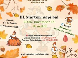 Cu ocazia zilei onomastice Márton, la Bătania se va organiza în data de 15 noiembrie de la ora 18.00 pentru a treia oară tradiționalul Bal Márton. Evenimntul va avea loc la căminul cultural din localitate, biletul de intrare costă 2000 de forinți pentru adulți și 1000 de forinți pentru copii. …